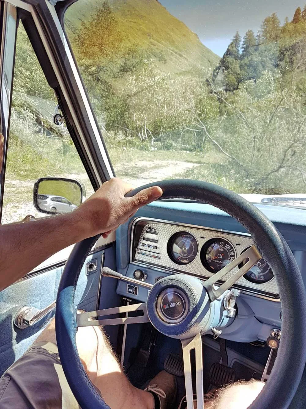 Beautiful day in the Val Ferrey and discovery of a mangnificent region in the Massif du Mont-Blanc between Switzerland and France. The jeep Cherokee as usual has worked very well and never heated. This place is really cool to discover at the wheel of a 1978 Jeep Cherokee, I am a happy man.